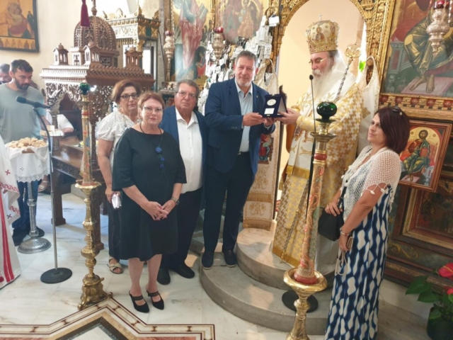 Τα μέλη του ΔΣ του Παγκοσμίου Συμβουλίου Κρητών είχαν την ευκαιρία να συμμετέχουν στη θεία Λειτουργία στην οποία χοροστάτησε ο Σεβασμιώτατος Μητροπολίτης Κισάμου και Σελίνου κ.κ. Αμφιλόχιος, ο οποίος μετά την Θεία Λειτουργία καλωσόρισε το Παγκόσμιο Συμβούλιο Κρητών, αναφέρθηκε στους δεσμούς που έχει η Ορθόδοξη Ακαδημία Κρήτης με τους Ομογενείς και έδωσε στον πρόεδρο του Συμβουλίου, Νίκο Καστρινάκη, αναμνηστικό δώρο από τα 50 Χρόνια της λειτουργίας της. Με την σειρά του ο κ. Καστρινάκης έδωσε τιμητική διάκριση στον κ.κ. Αμφιλόχιο και εξήγησε τους λόγους που επιλέχθηκε η Ορθόδοξη Ακαδημία Κρήτης για να φιλοξενήσει το Μεγάλο Συνέδριο του Παγκοσμίου Συμβουλίου Κρητών.