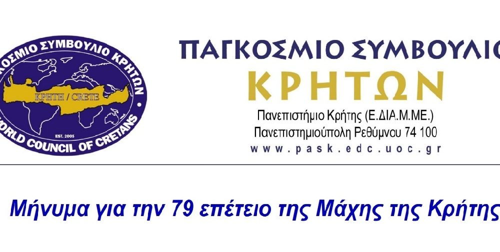 79 χρόνια συμπληρώθηκαν από τη Μάχη της Κρήτης και το Παγκόσμιο Συμβούλιο Κρητών με μήνυμά του καταθέτει “τον ελάχιστο φόρο Τιμής στους ιδεολόγους οραματιστές και ήρωες που γέννησε το Νησί μας, οι οποίοι σφράγισαν με την ιδία τους την ζωή την ιστορία του”, #europolitis