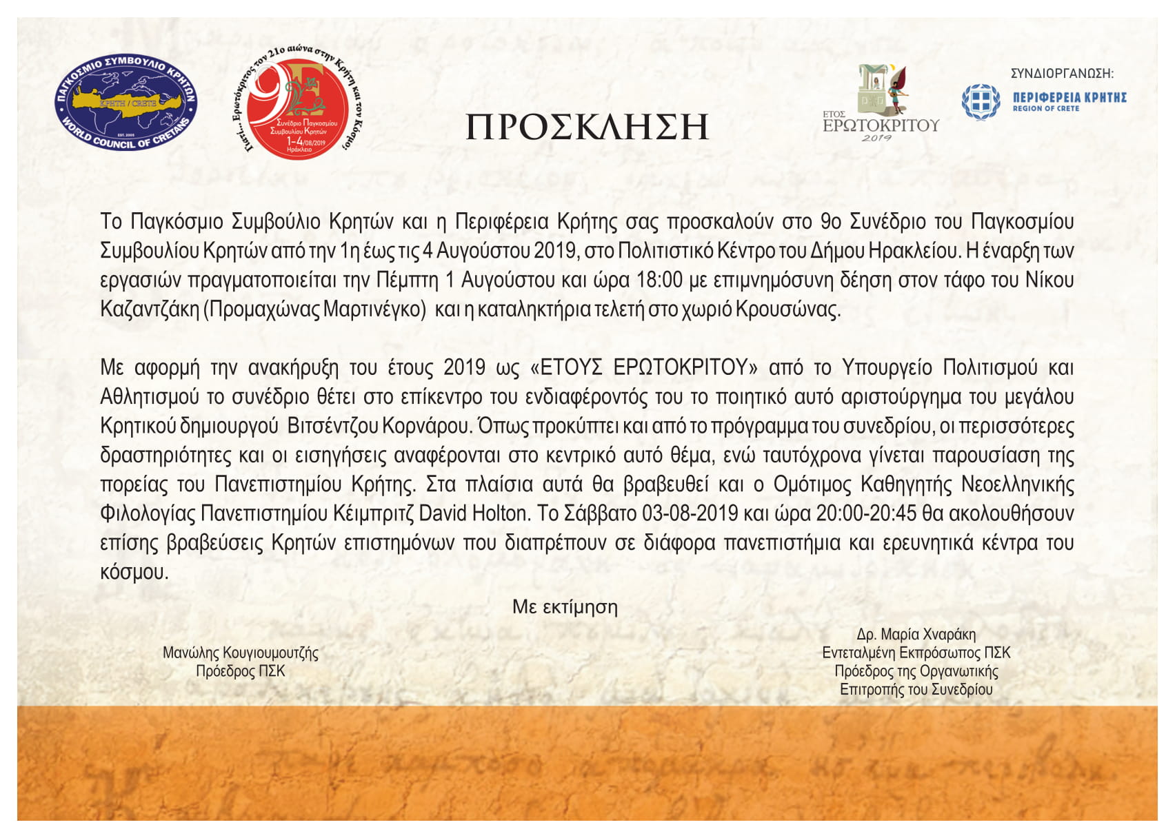ΠΡΟΣΚΛΗΣΗ ΣΤΟ 9ο ΣΥΝΕΔΡΙΟ ΤΟΥ ΠΣΚ