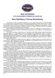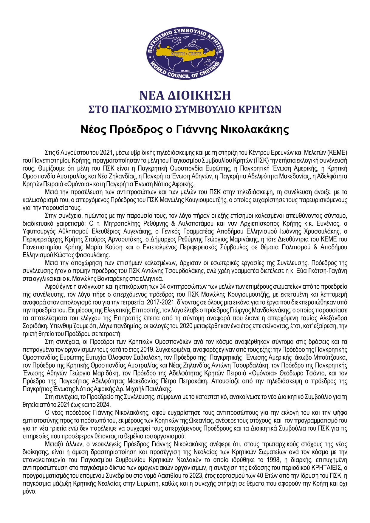 NEA ΔΙΟΙΚΗΣΗ ΣΤΟ ΠΑΓΚΟΣΜΙΟ ΣΥΜΒΟΥΛΙΟ ΚΡΗΤΩΝ / Νέος Πρόεδρος ο Γιάννης Νικολακάκης 2022-03-16 Maria Chnaraki